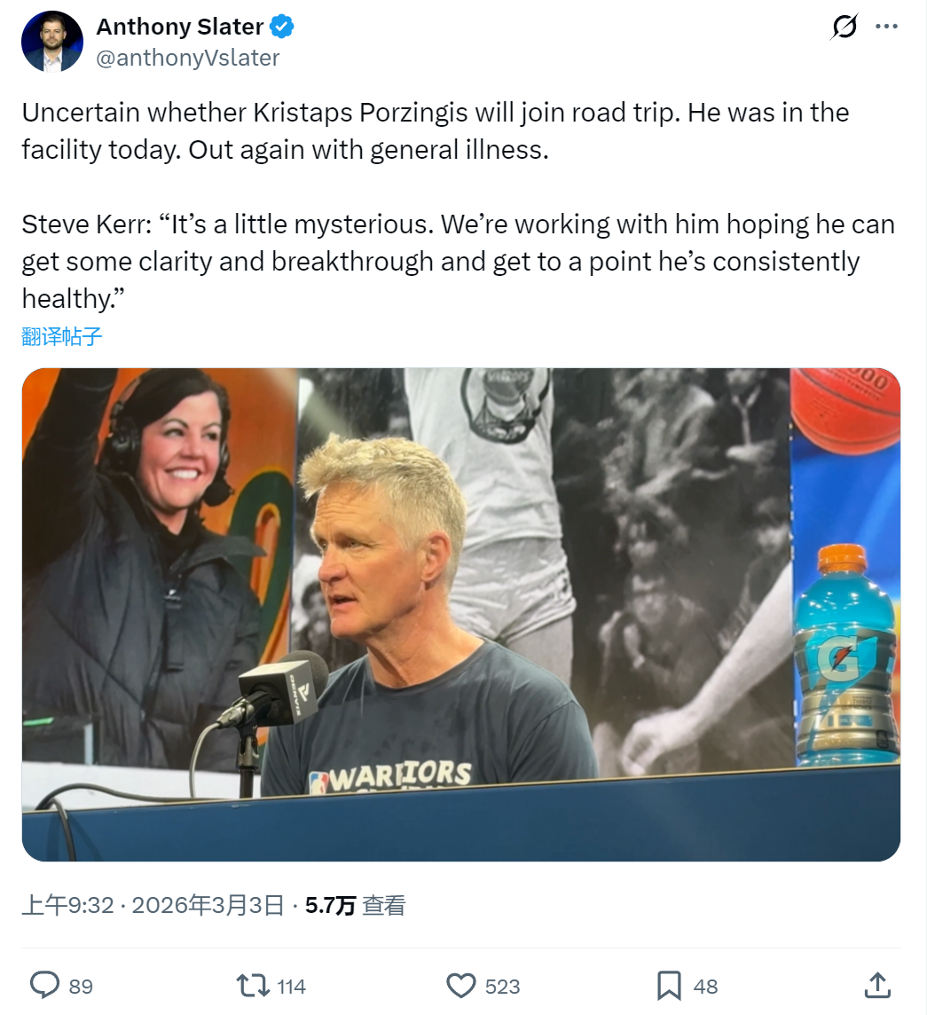 勇士球迷要气炸了!主场迎战快船的比赛,新援波尔津吉斯又双叒叕缺阵了,自加盟勇士以来,他总共就打了 1 场比赛,缺席足足 9 场,出勤率低到离谱。那么波神的病因是什么?没人知道。勇士主帅科尔今天赛前透露:“波尔津吉斯的病情有些神秘,队医试图弄清楚他的病情究竟如何!”神秘到什么程度?科尔在电台节目里详细解释过:波神这次生病,严重到大量脱水且具有传染性,所以必须居...